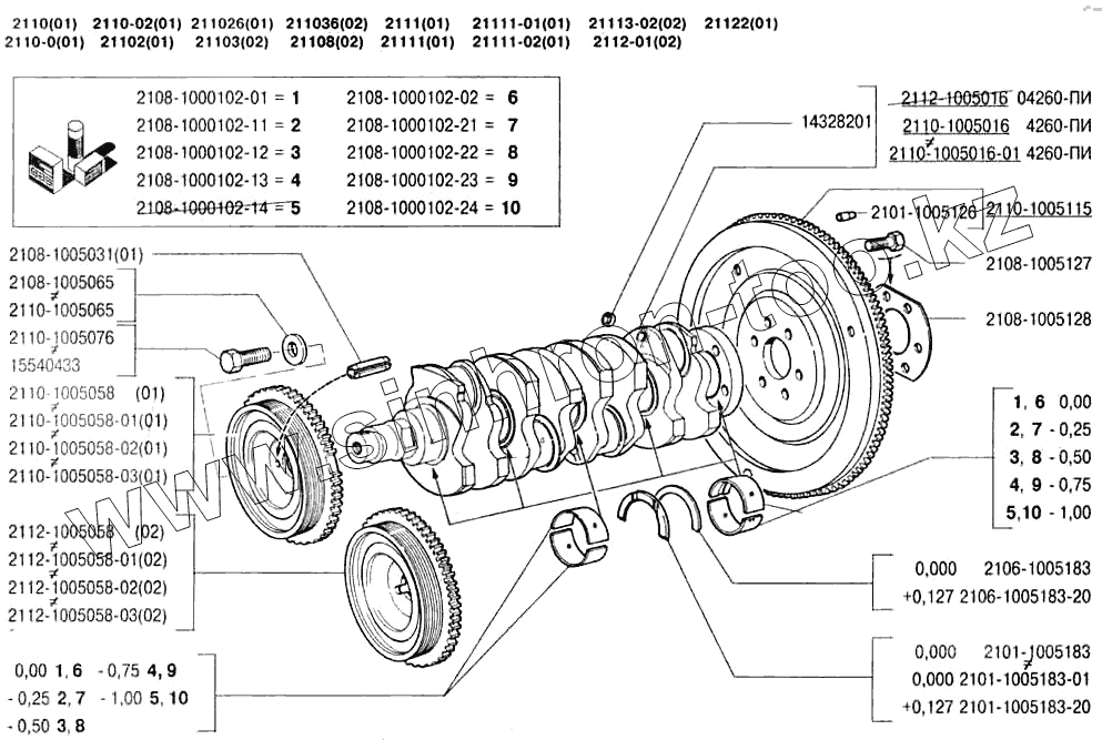 Каталог запасных частей к технике: ВАЗ-2110. Вал коленчатый и маховик
