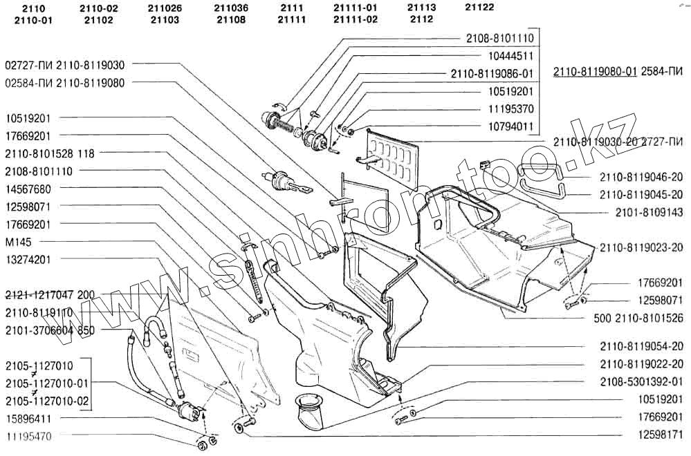 Каталог запасных частей к технике: ВАЗ-2110. Воздухопроводы отопителя