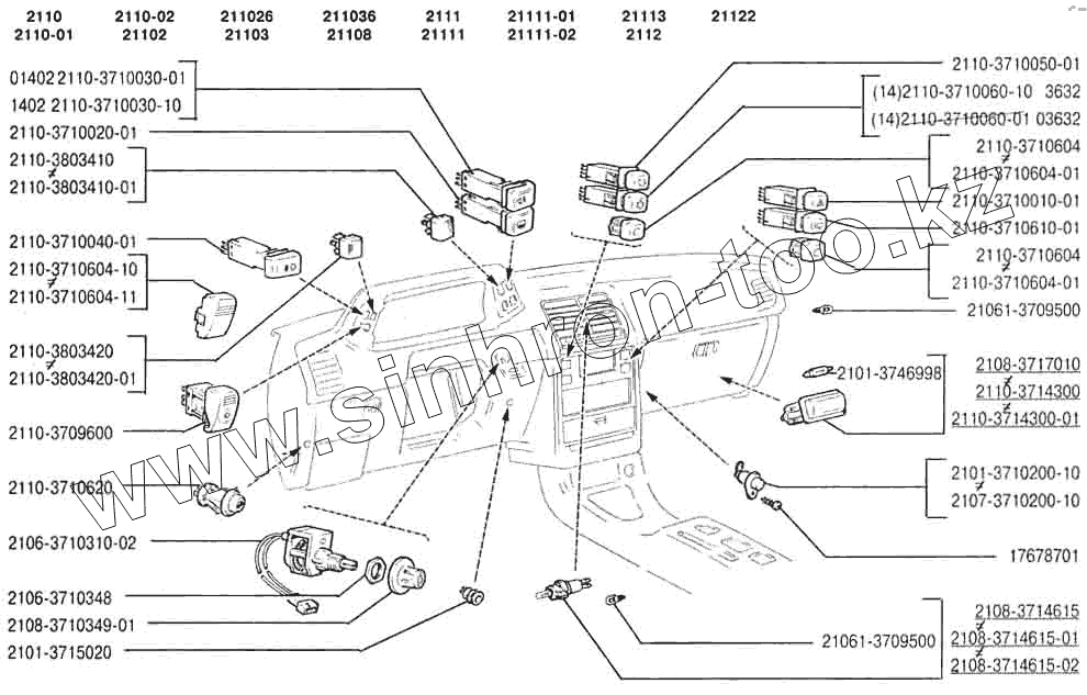 Каталог запасных частей к технике: ВАЗ-2110. Выключатели и подсветка панели приборов