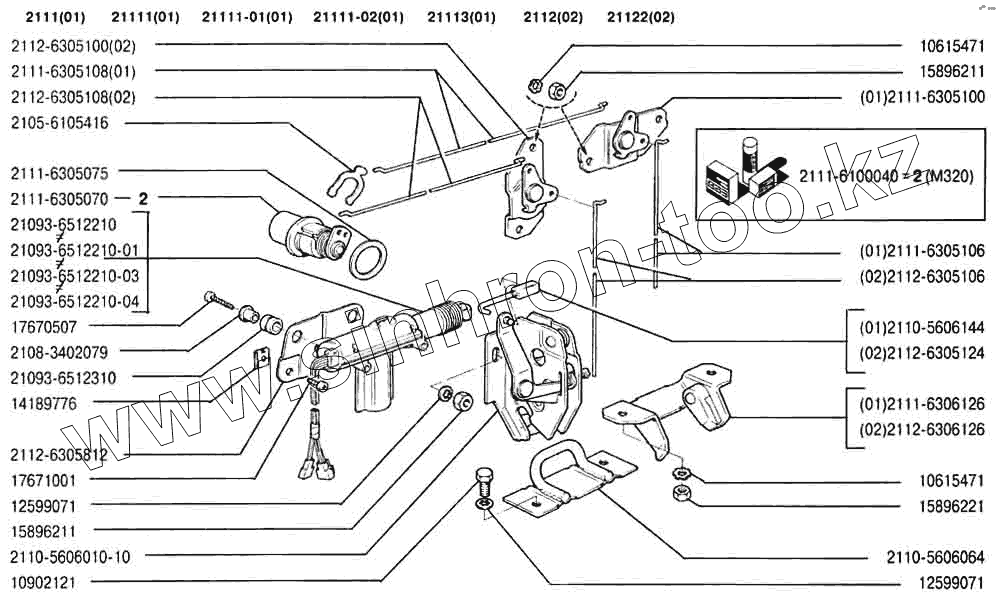 Каталог запасных частей к технике: ВАЗ-2110. Замок двери задка