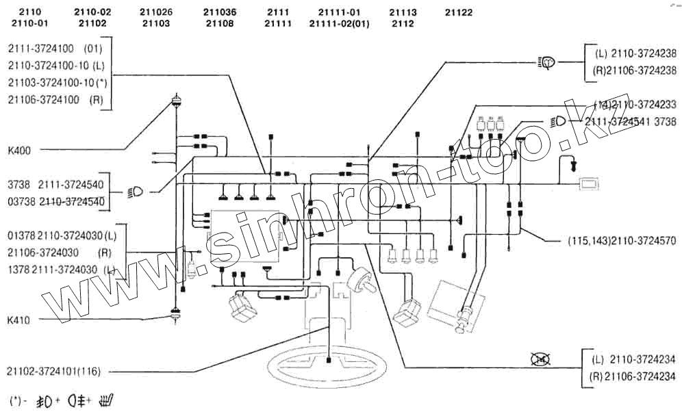 Каталог запасных частей к технике: ВАЗ-2110. Жгуты проводов панели приборов