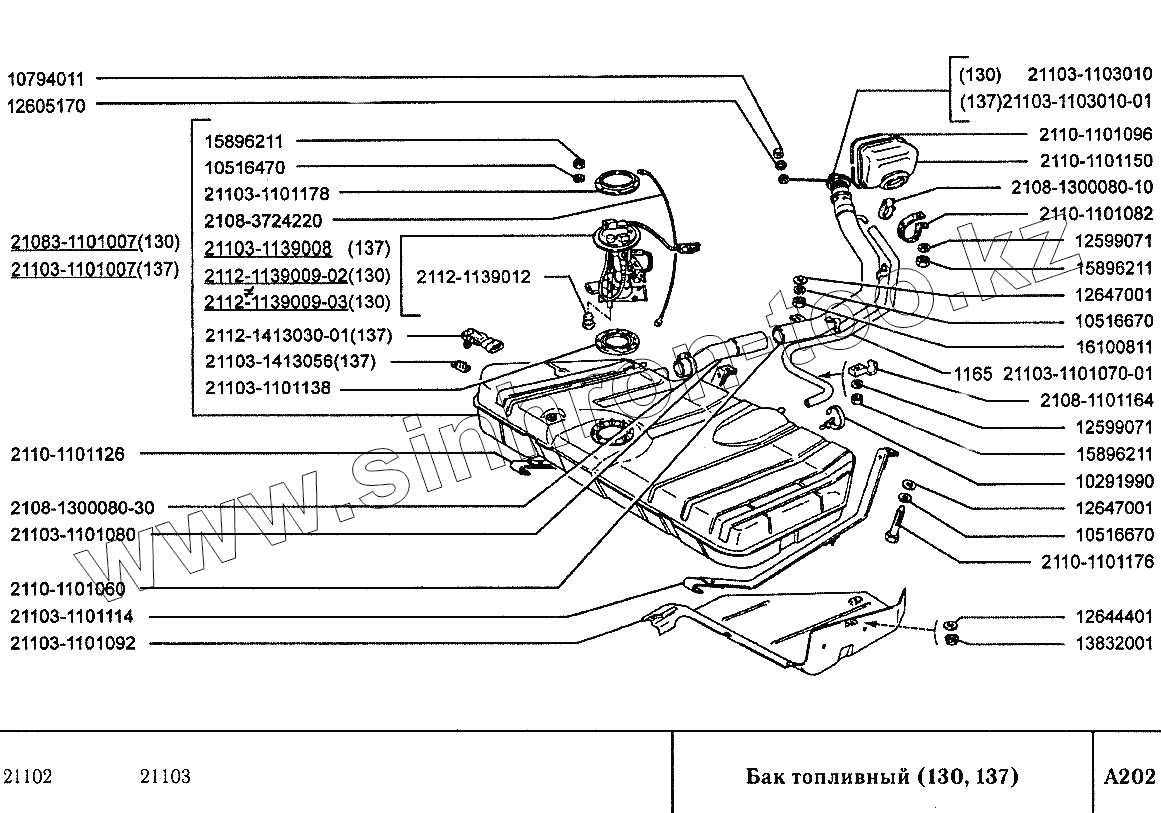 Каталог запасных частей к технике: ВАЗ-2110. Бак топливный (130, 137)