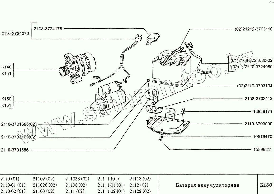Каталог запасных частей к технике: ВАЗ-2110. Батарея аккумуляторная