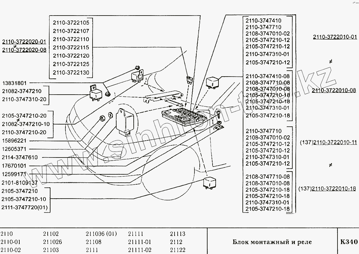 Каталог запасных частей к технике: ВАЗ-2110. Блок монтажный и реле