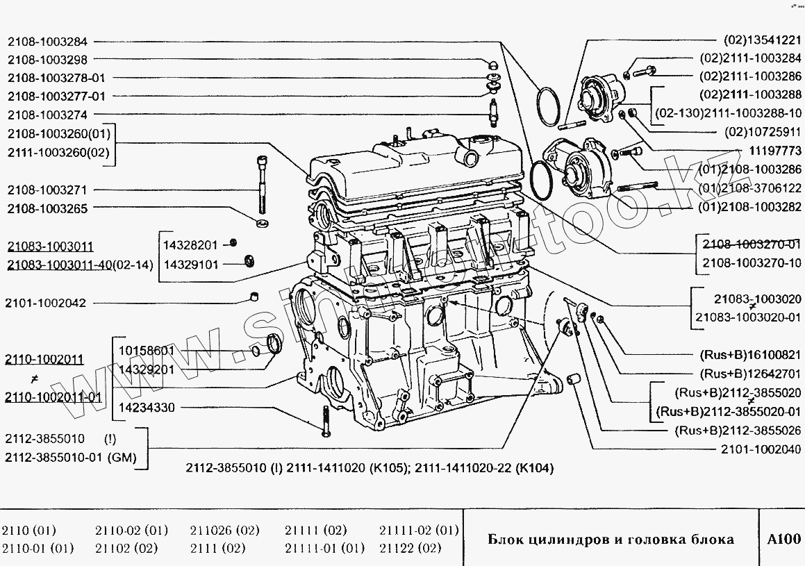 Каталог запасных частей к технике: ВАЗ-2110. Блок цилиндров и головка блока