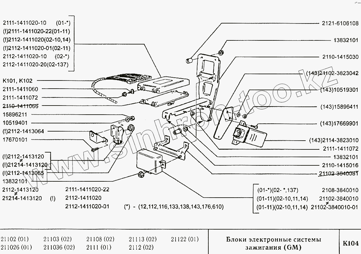 Каталог запасных частей к технике: ВАЗ-2110. Блоки электронные системы зажигания (GM)
