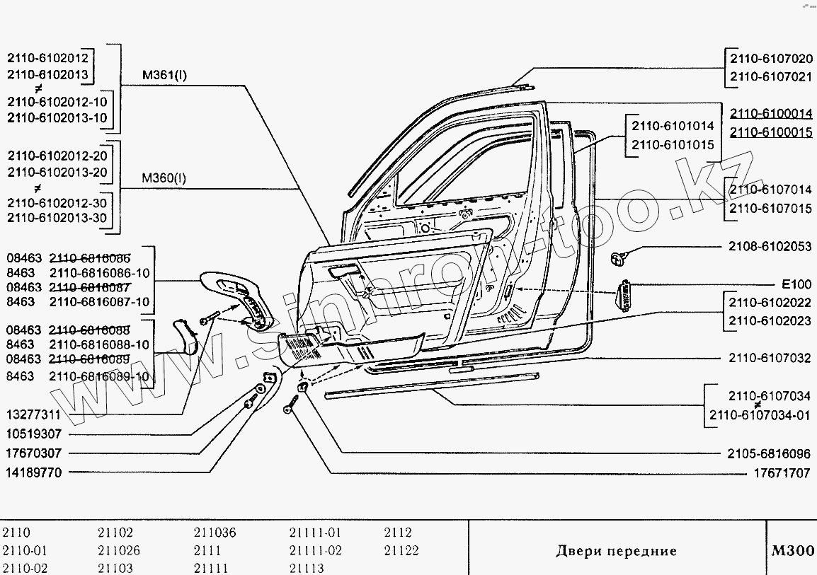 Каталог запасных частей к технике: ВАЗ-2110. Двери передние