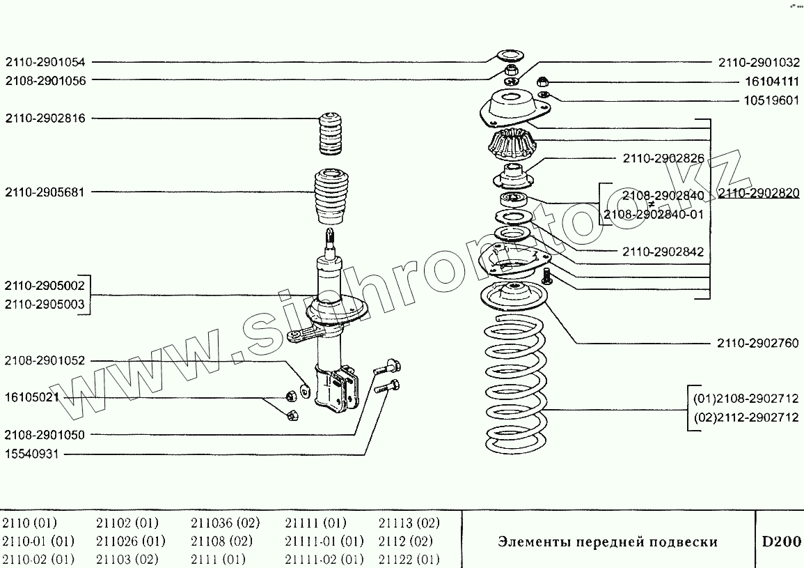 Каталог запасных частей к технике: ВАЗ-2110. Элементы передней подвески