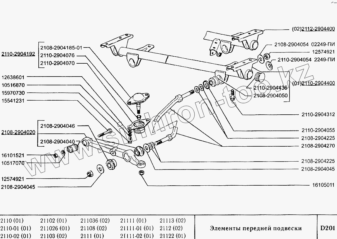 Каталог запасных частей к технике: ВАЗ-2110. Элементы передней подвески