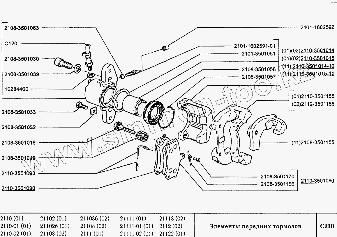Каталог запасных частей к технике: ВАЗ-2110. Элементы передних тормозов