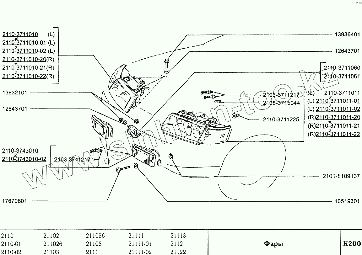 Каталог запасных частей к технике: ВАЗ-2110. Фары