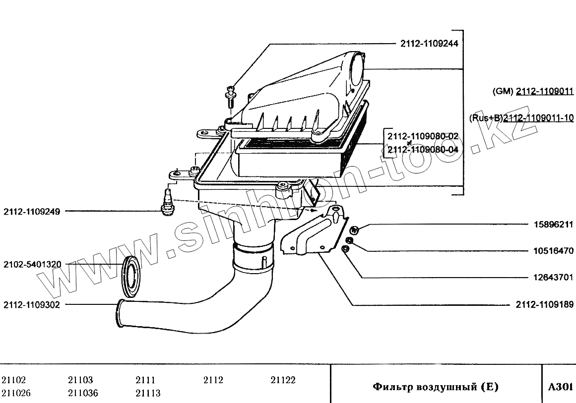 Каталог запасных частей к технике: ВАЗ-2110. Фильтр воздушный (E)