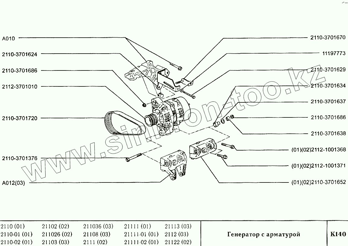 Каталог запасных частей к технике: ВАЗ-2110. Генератор с арматурой