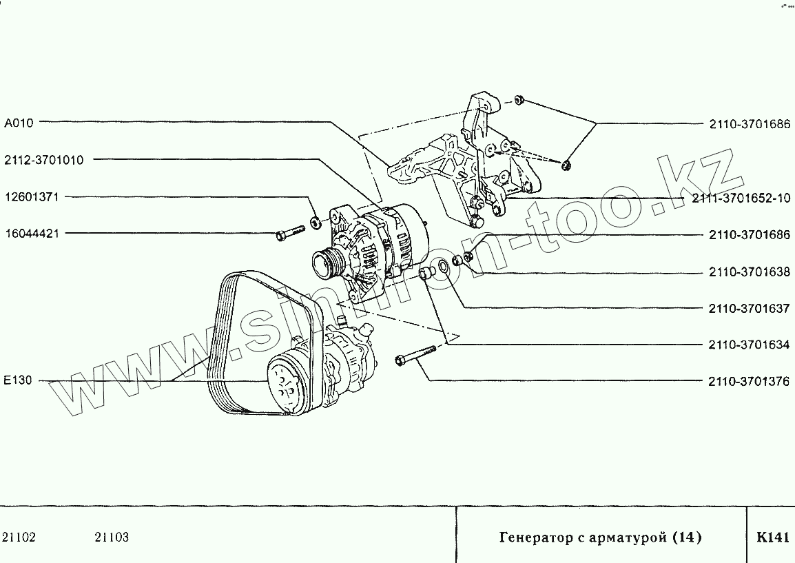 Каталог запасных частей к технике: ВАЗ-2110. Генератор с арматурой (14)
