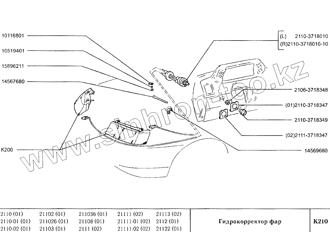 Каталог запасных частей к технике: ВАЗ-2110. Гидрокорректор фар