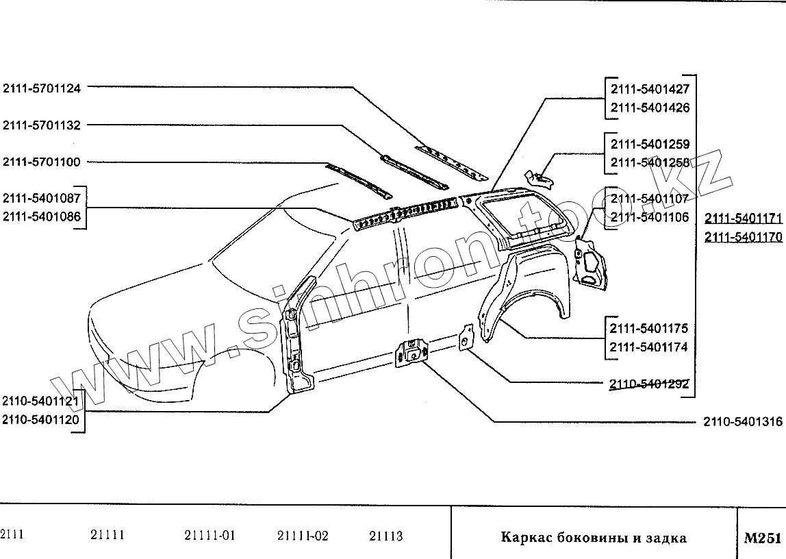 Каталог запасных частей к технике: ВАЗ-2110. Каркас боковины и задка