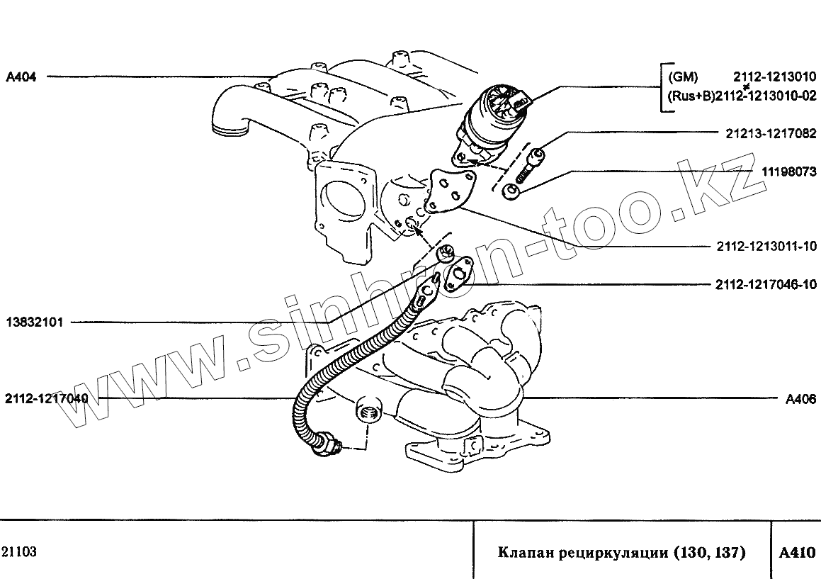 Каталог запасных частей к технике: ВАЗ-2110. Клапан рециркуляции (130, 137)