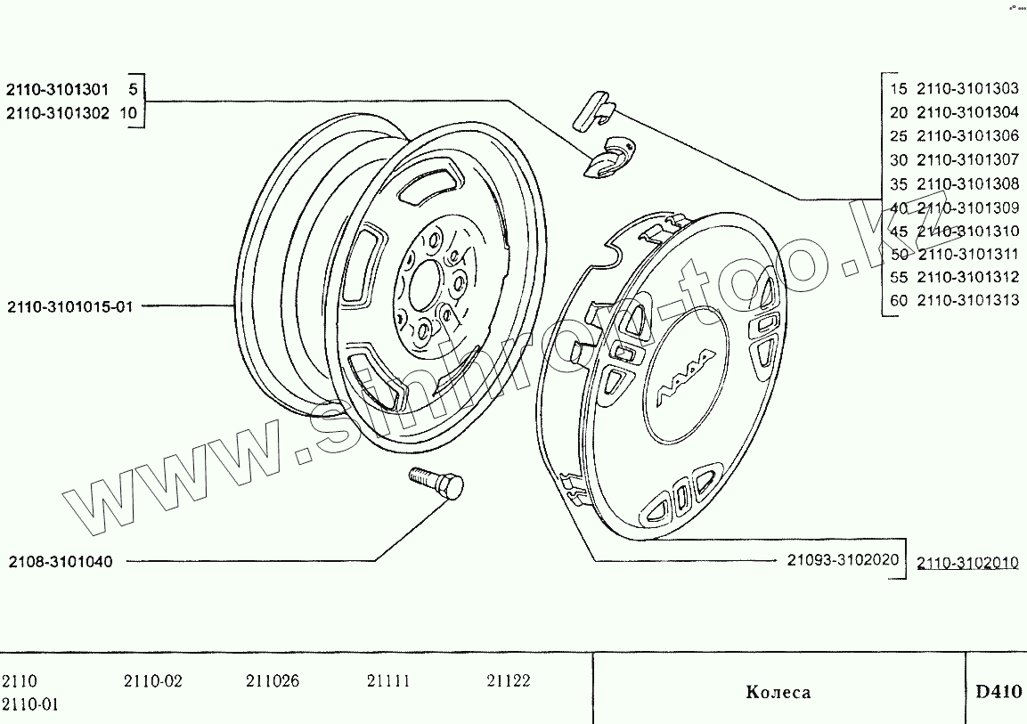 Каталог запасных частей к технике: ВАЗ-2110. Колеса