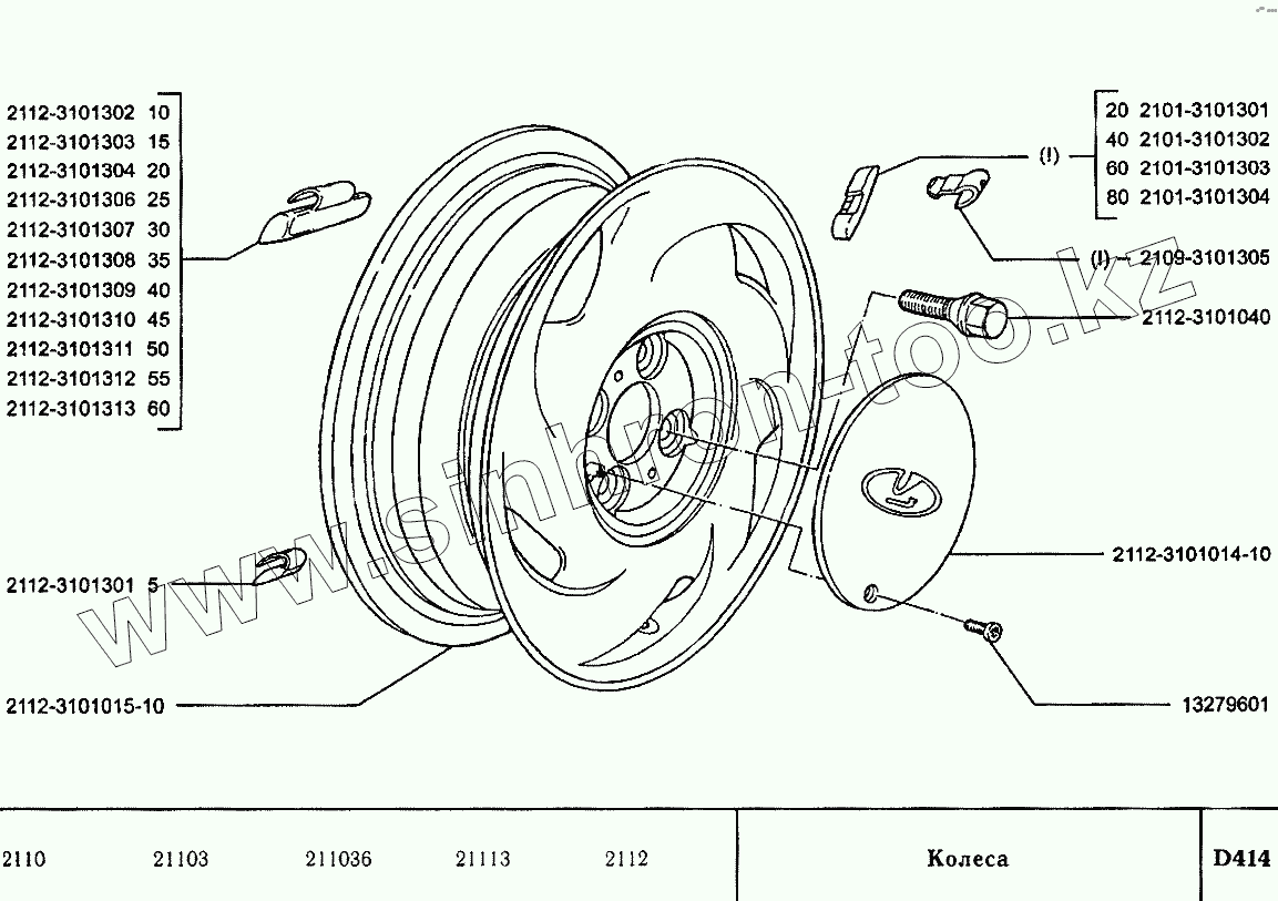 Каталог запасных частей к технике: ВАЗ-2110. Колеса