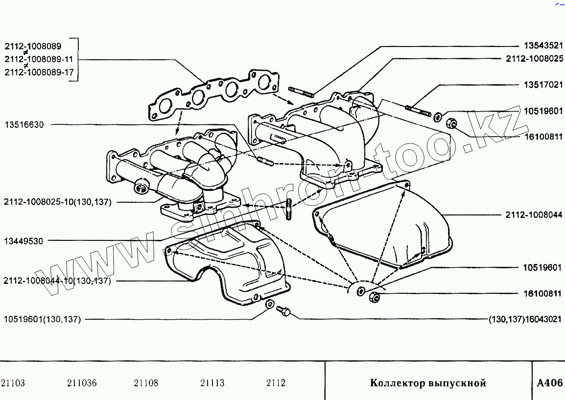 Каталог запасных частей к технике: ВАЗ-2110. Коллектор выпускной