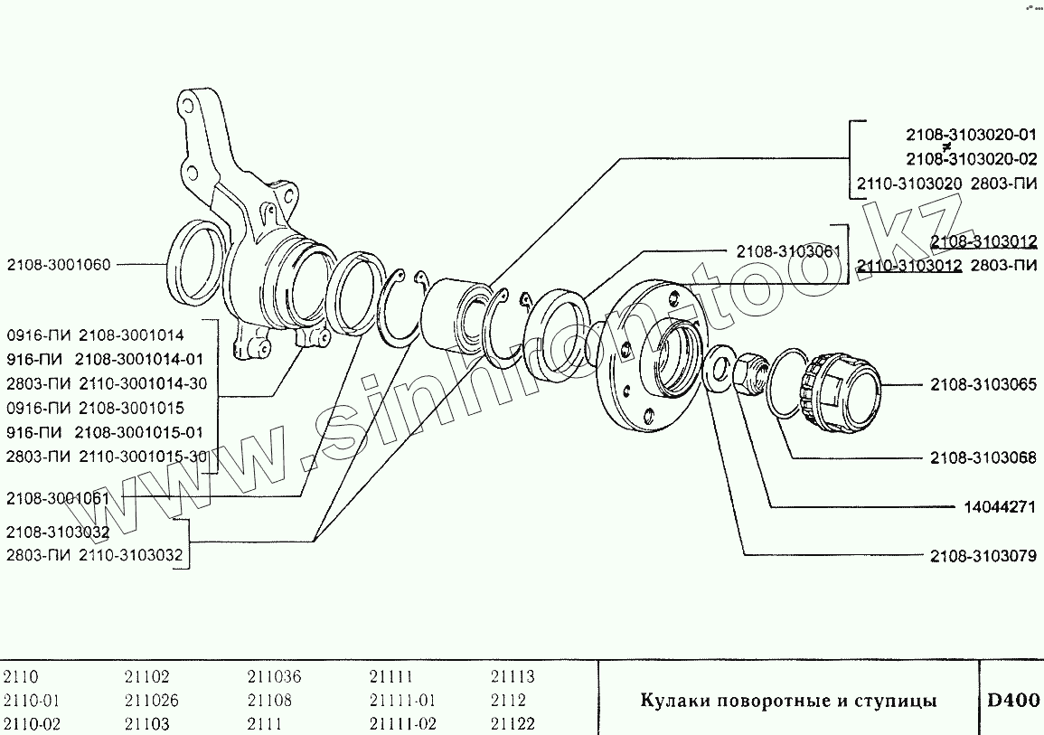 Каталог запасных частей к технике: ВАЗ-2110. Кулаки поворотные и ступицы