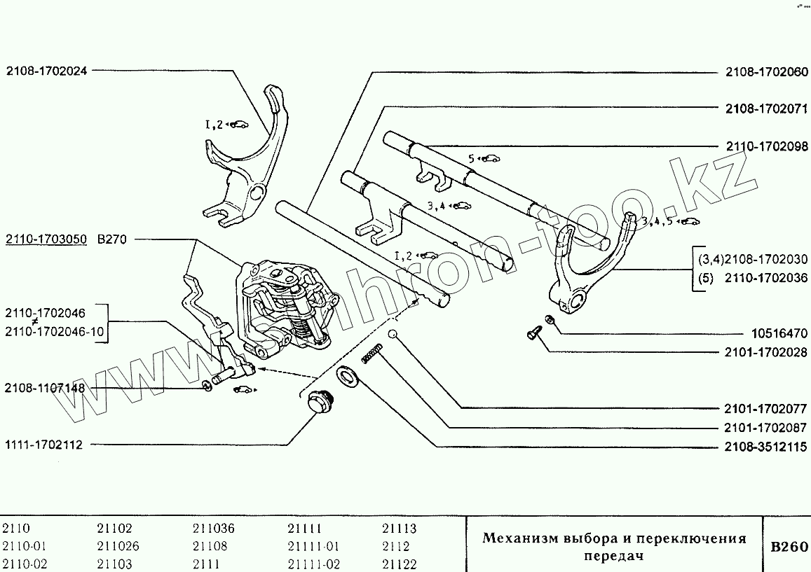 Каталог запасных частей к технике: ВАЗ-2110. Механизм выбора и переключения передач