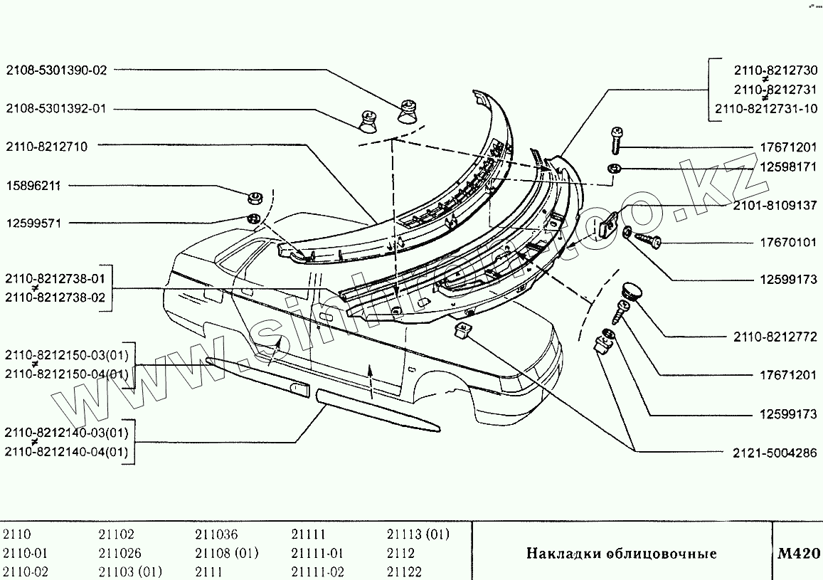 Каталог запасных частей к технике: ВАЗ-2110. Накладки облицовочные