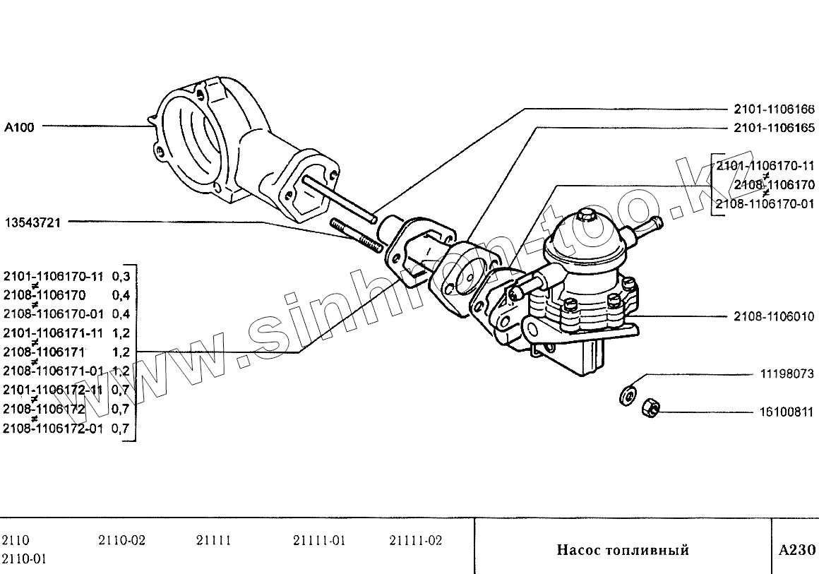 Каталог запасных частей к технике: ВАЗ-2110. Насос топливный