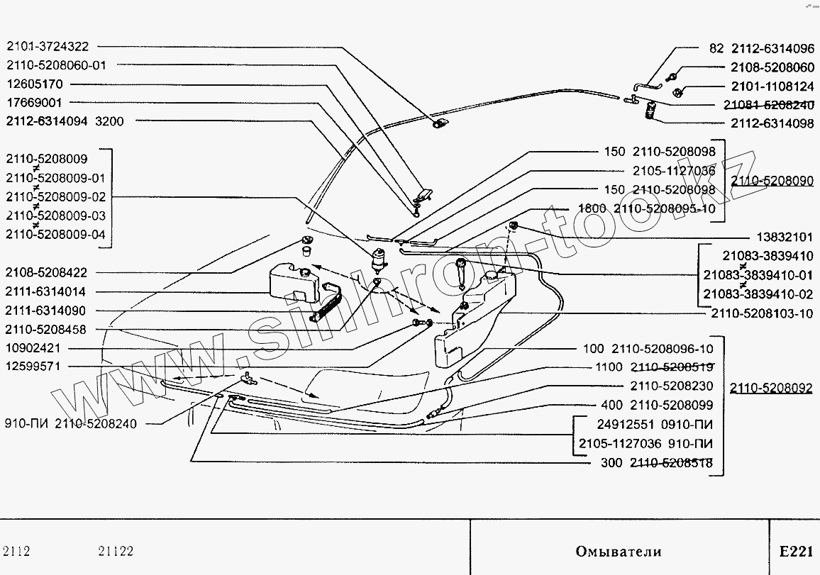 Каталог запасных частей к технике: ВАЗ-2110. Омыватели