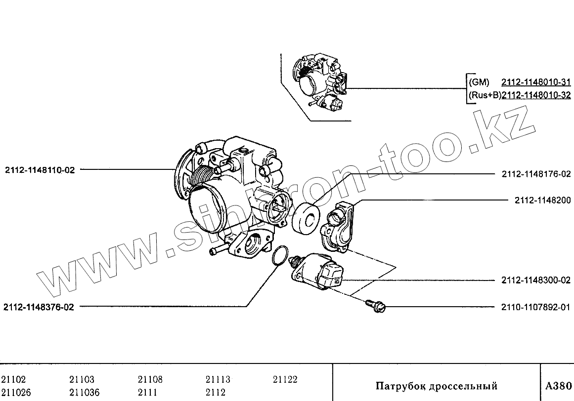Каталог запасных частей к технике: ВАЗ-2110. Патрубок дроссельный