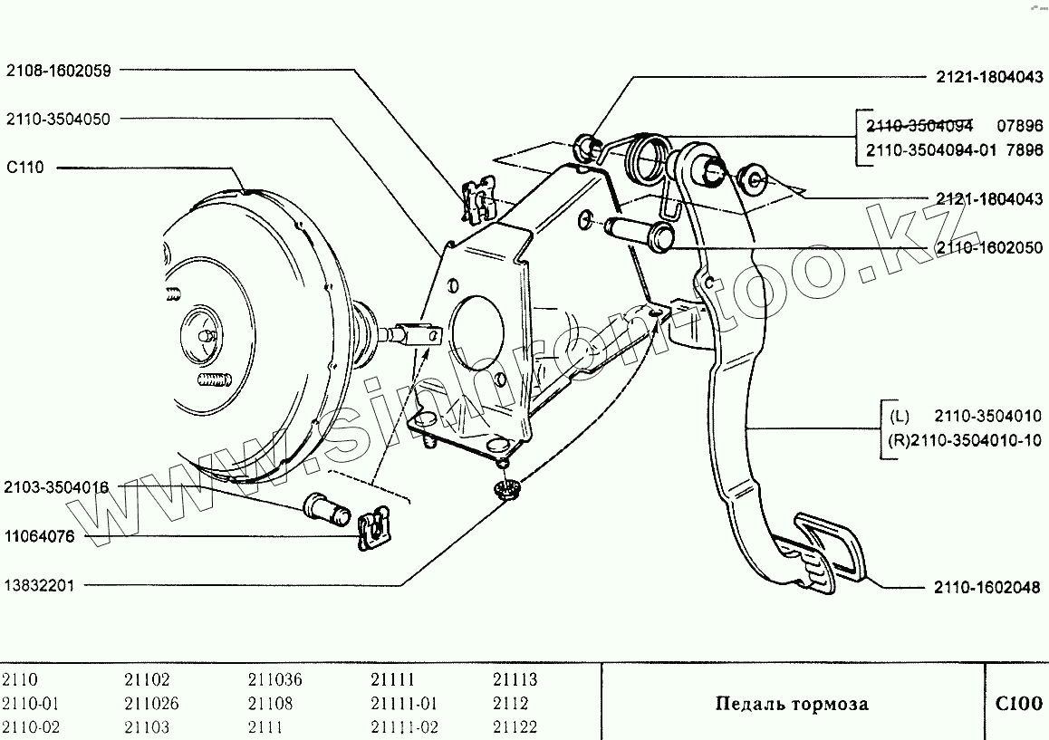 Каталог запасных частей к технике: ВАЗ-2110. Педаль тормоза