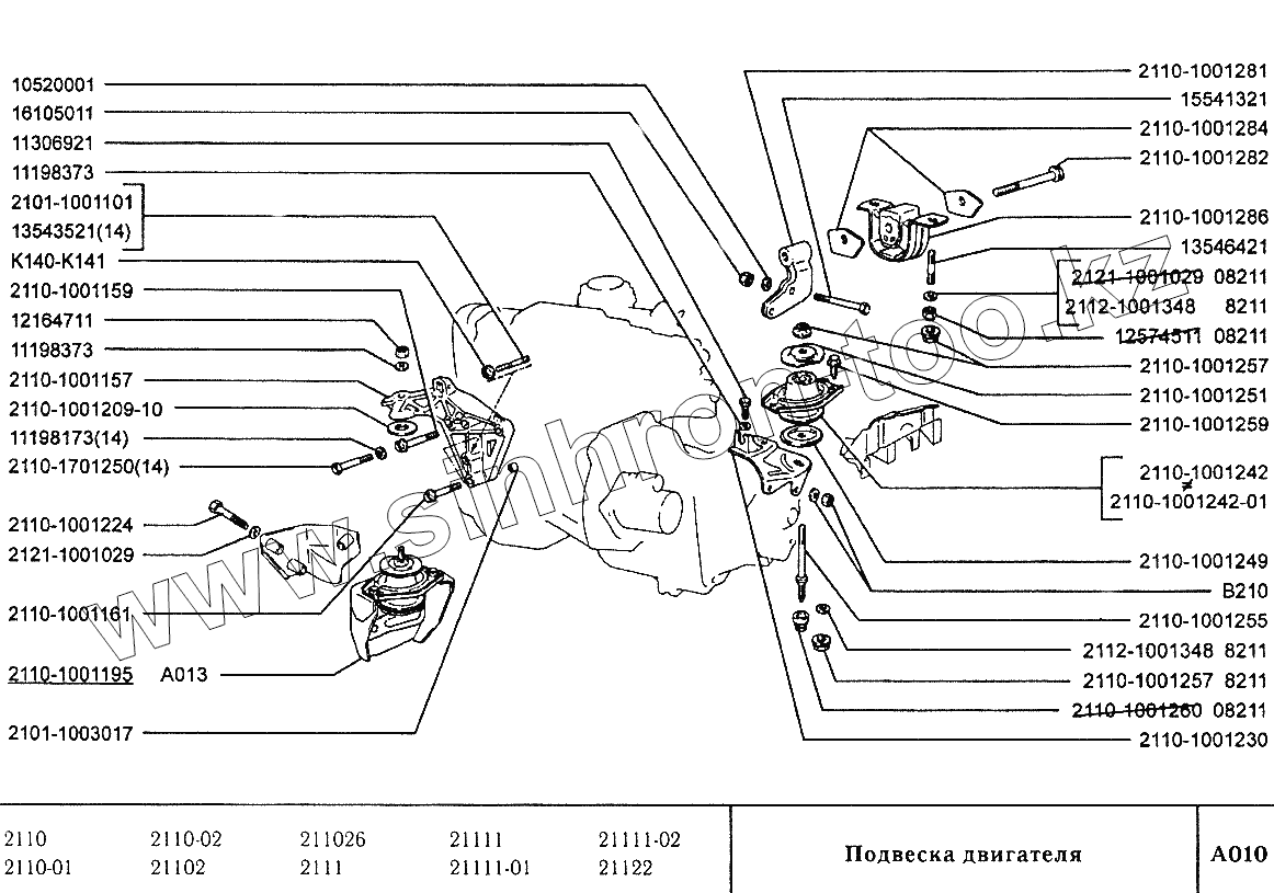 Каталог запасных частей к технике: ВАЗ-2110. Подвеска двигателя
