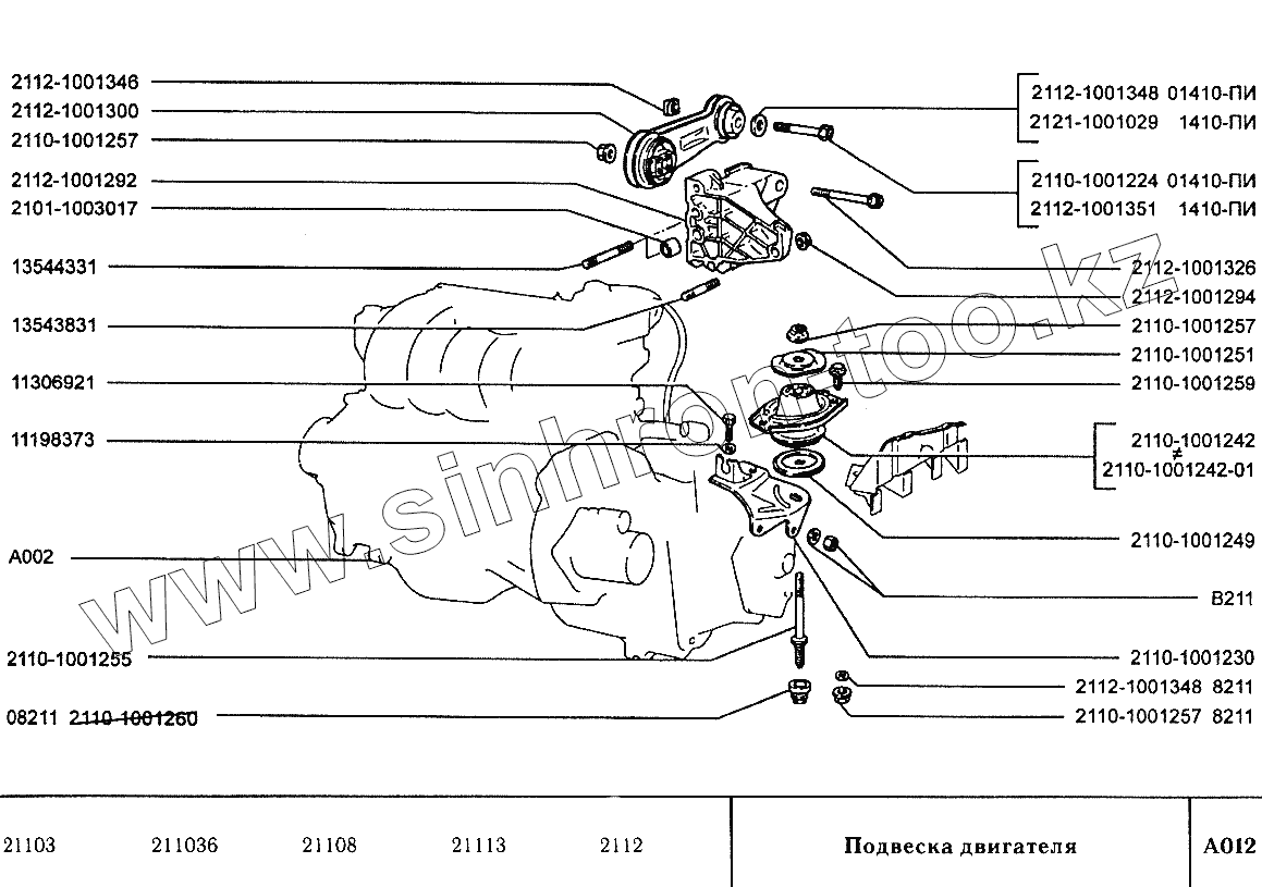 Каталог запасных частей к технике: ВАЗ-2110. Подвеска двигателя