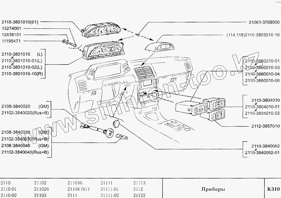 Каталог запасных частей к технике: ВАЗ-2110. Приборы