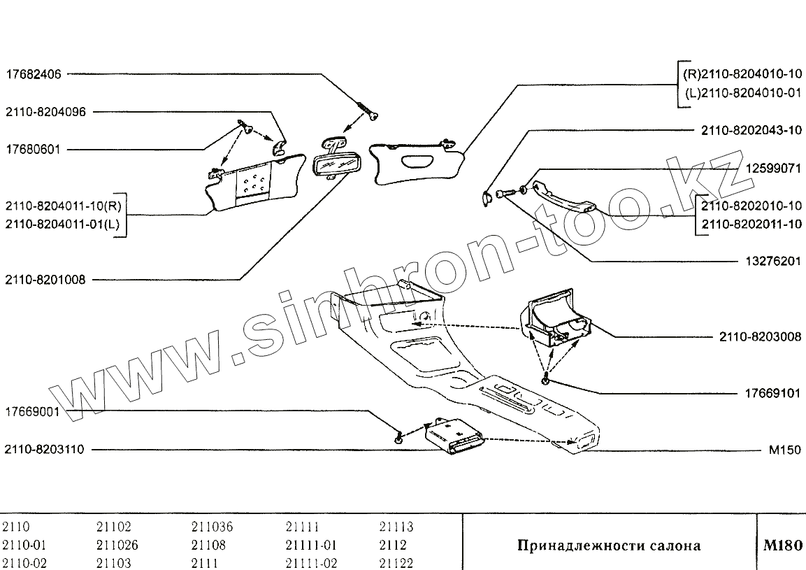 Каталог запасных частей к технике: ВАЗ-2110. Принадлежности салона