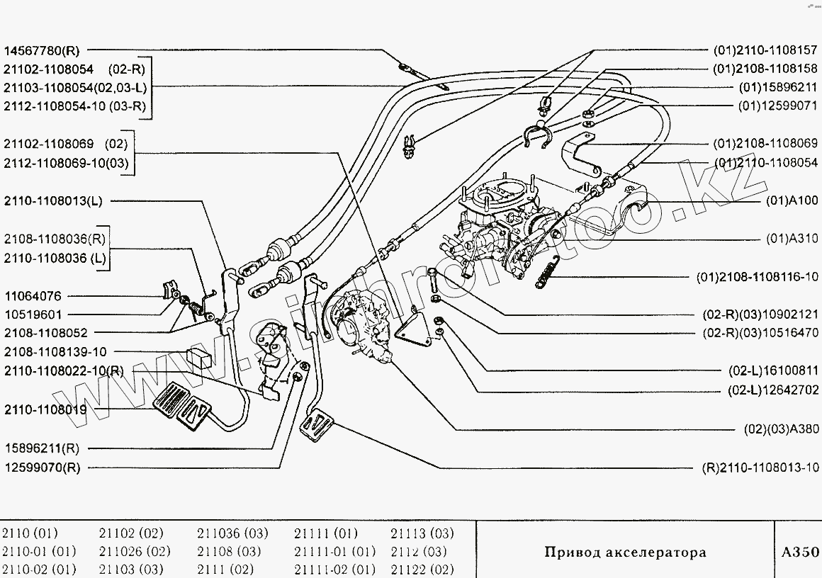 Каталог запасных частей к технике: ВАЗ-2110. Привод акселератора