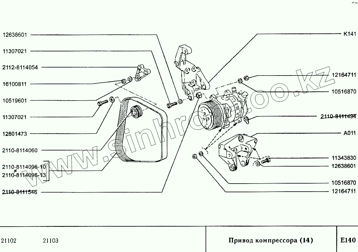 Каталог запасных частей к технике: ВАЗ-2110. Привод компрессора (14)
