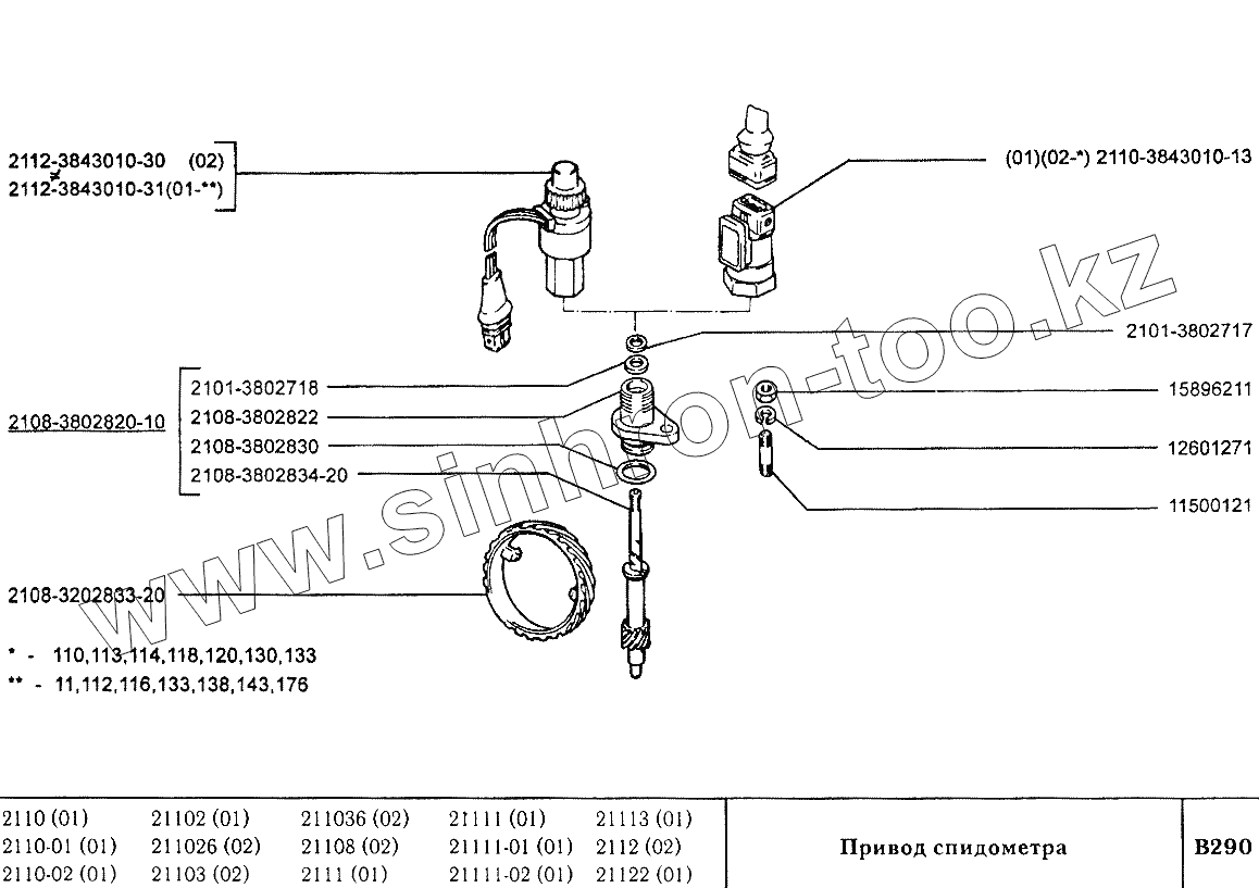 Каталог запасных частей к технике: ВАЗ-2110. Привод спидометра