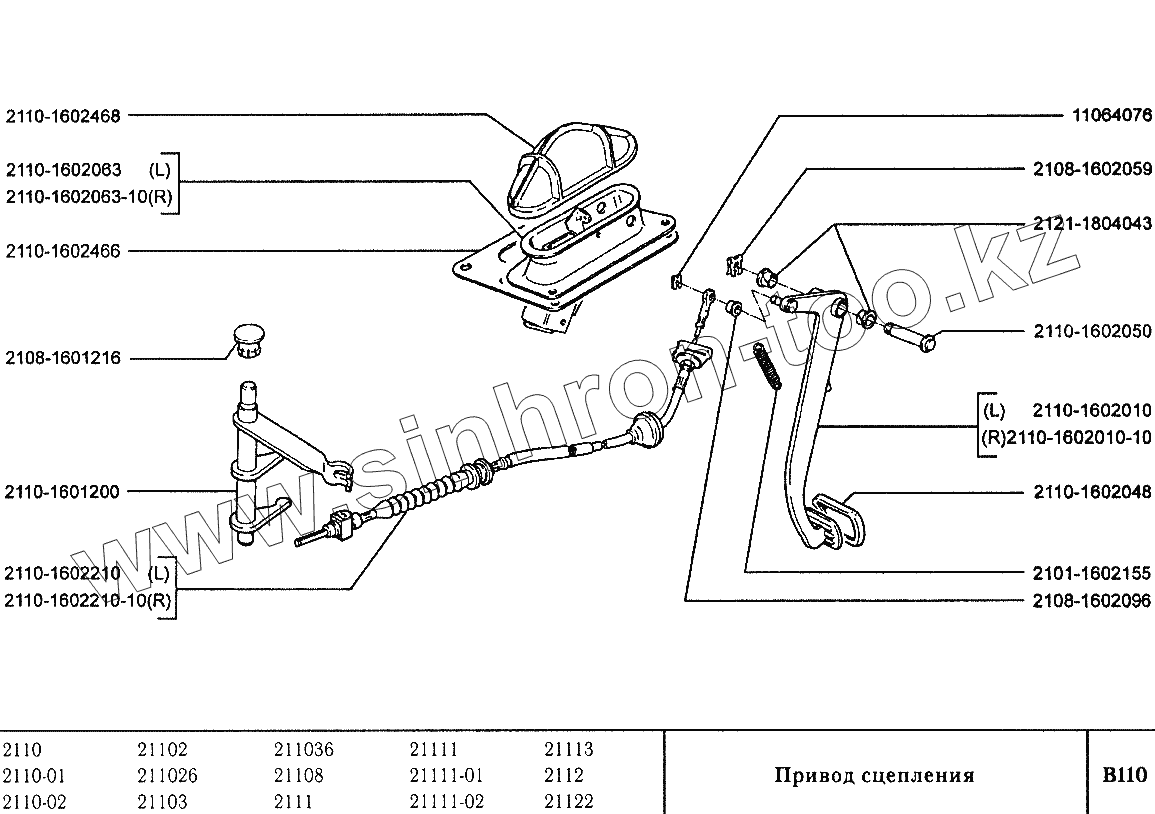 Каталог запасных частей к технике: ВАЗ-2110. Привод сцепления