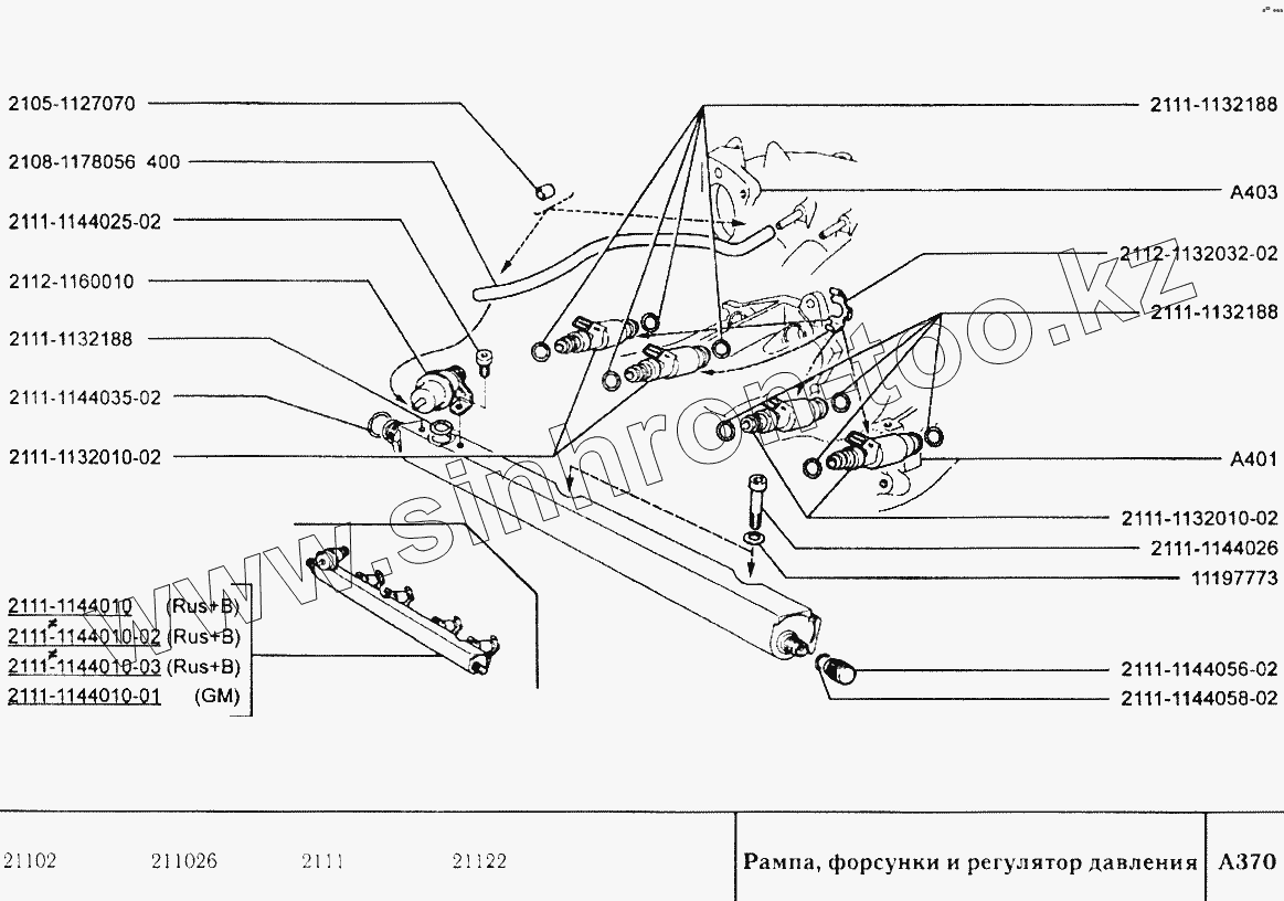 Каталог запасных частей к технике: ВАЗ-2110. Рампа, форсунки и регулятор давления