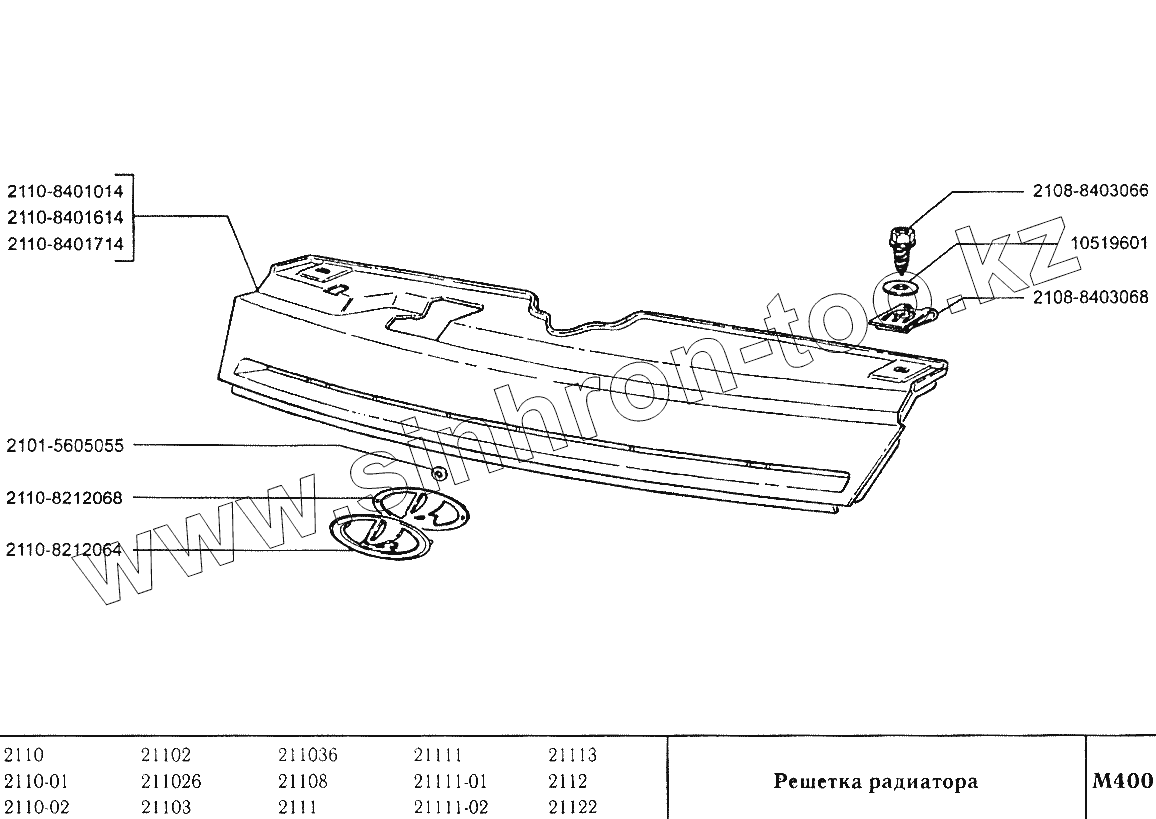 Каталог запасных частей к технике: ВАЗ-2110. Решетка радиатора