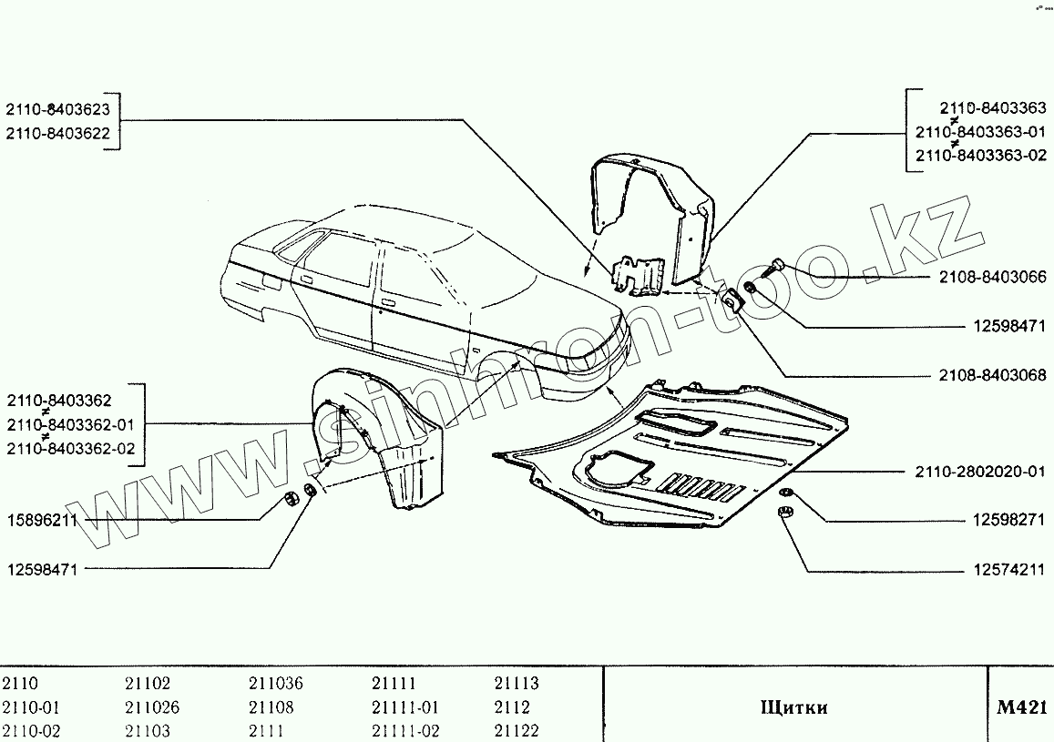 Каталог запасных частей к технике: ВАЗ-2110. Щитки