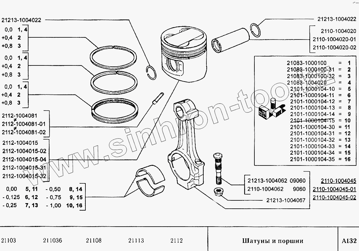 Каталог запасных частей к технике: ВАЗ-2110. Шатуны и поршни
