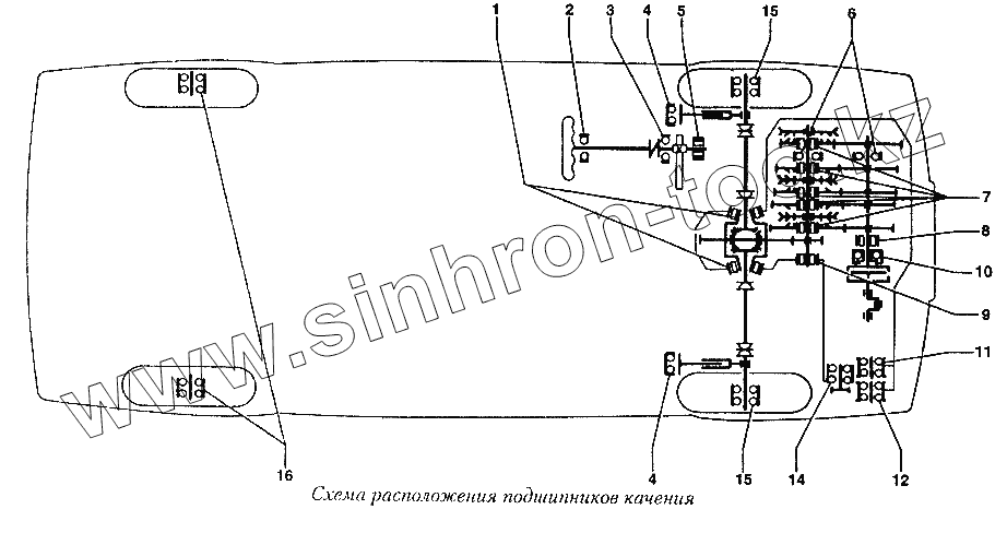 Каталог запасных частей к технике: ВАЗ-2110. Схема расположения подшипников качения