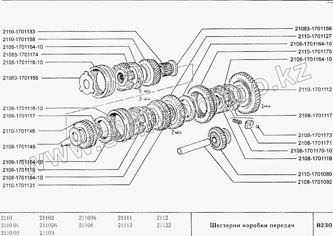 Каталог запасных частей к технике: ВАЗ-2110. Шестерни коробки передач