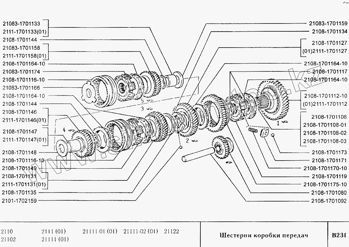 Каталог запасных частей к технике: ВАЗ-2110. Шестерни коробки передач