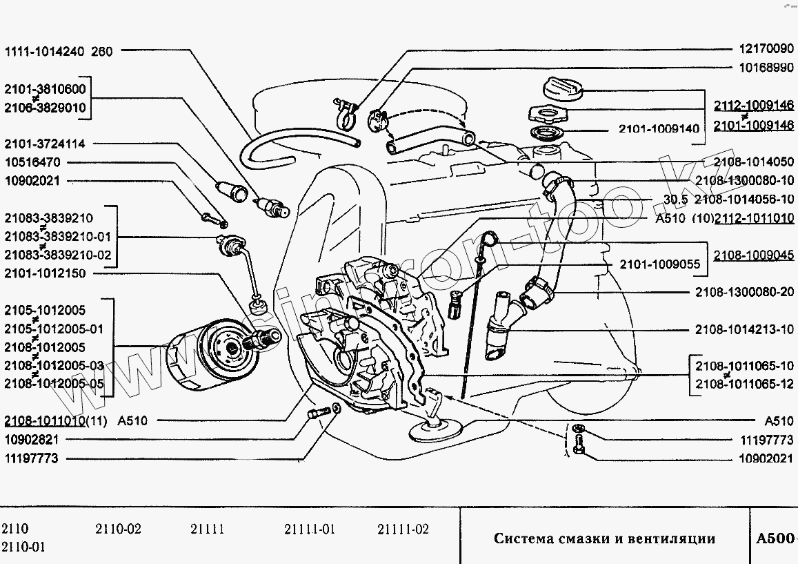 Каталог запасных частей к технике: ВАЗ-2110. Система смазки и вентиляции