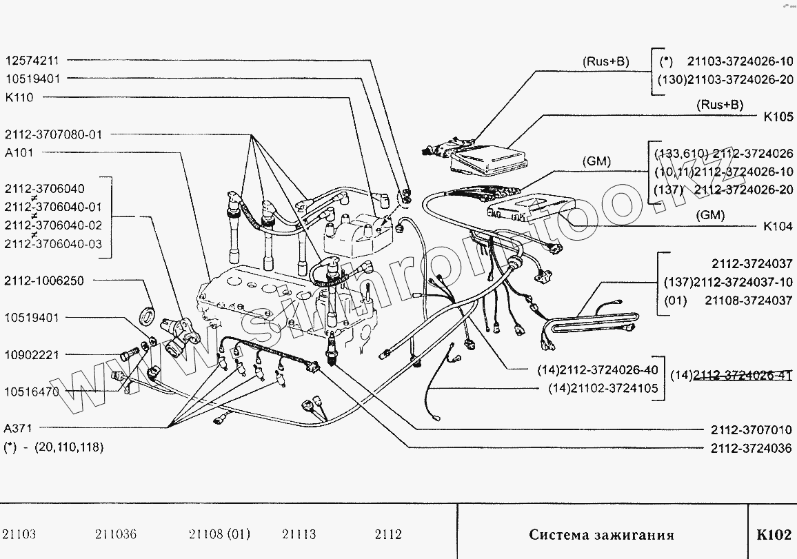 Каталог запасных частей к технике: ВАЗ-2110. Система зажигания