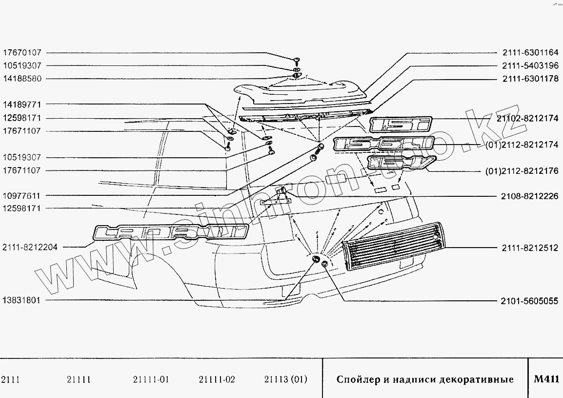 Каталог запасных частей к технике: ВАЗ-2110. Спойлер и надписи декоративные