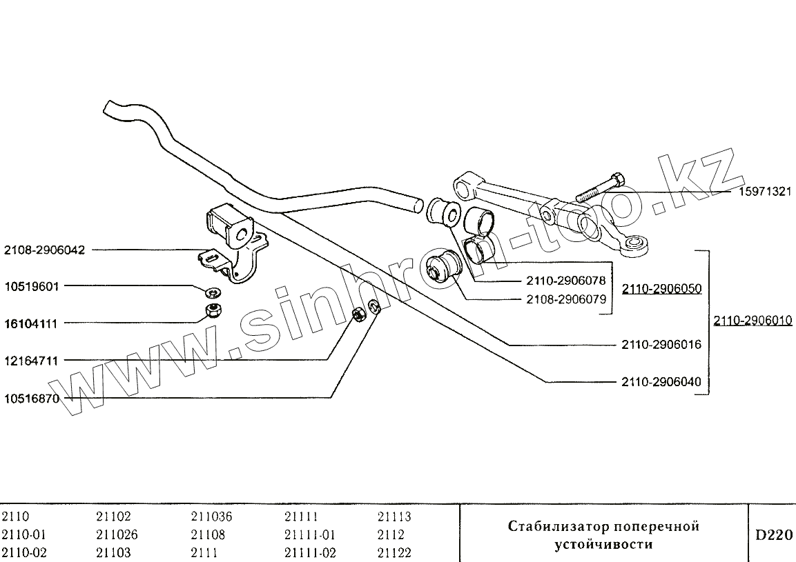 Каталог запасных частей к технике: ВАЗ-2110. Стабилизатор поперечной устойчивости